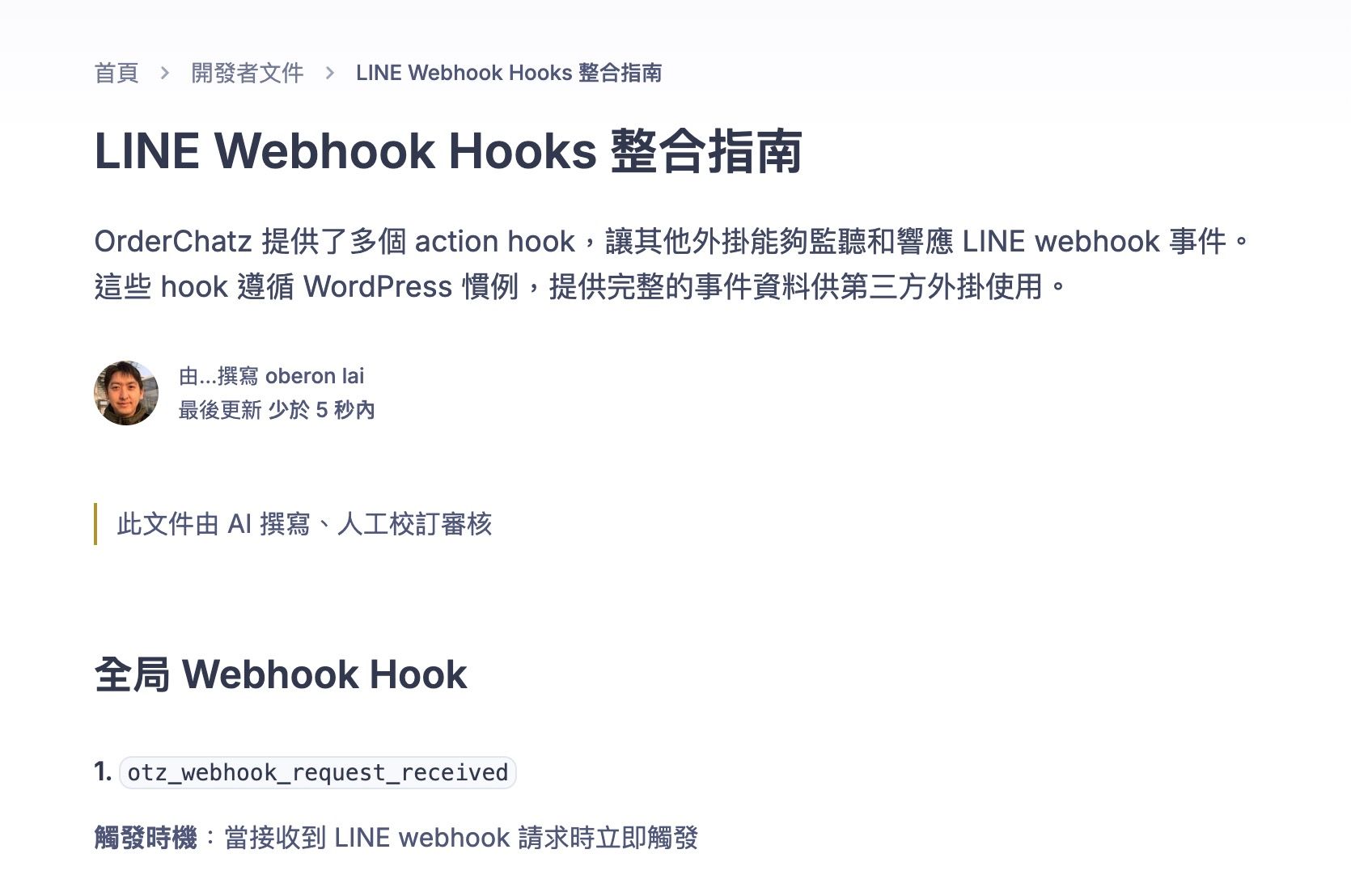 讓外掛開發者可以接收到 LINE Webhook 的請求來做整合,目前有 7 種 Hook 可以使用,具體的使用範例請參考以下文件: