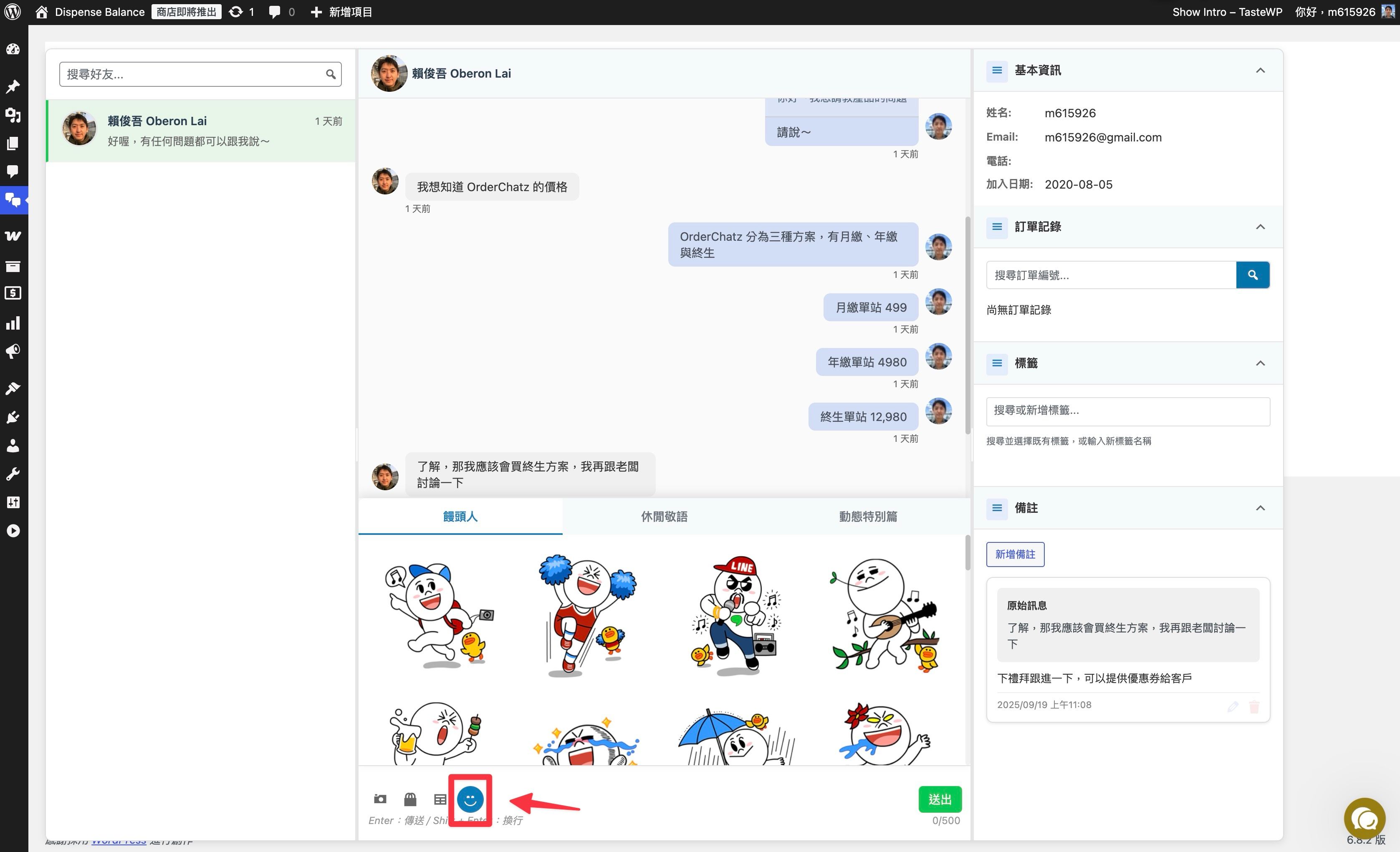 新增了傳送貼圖的功能,目前有三組,有盡量挑選比較實用的,又能再省下一點打字的時間~